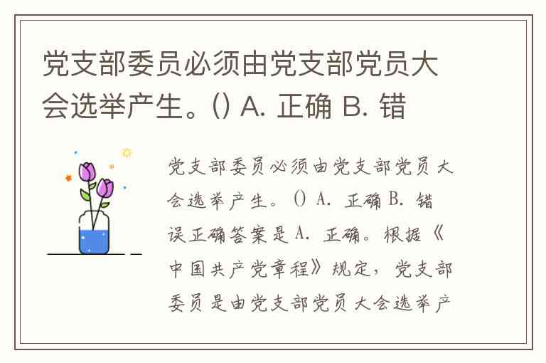 党支部委员必须由党支部党员大会选举产生。() A. 正确 B. 错误