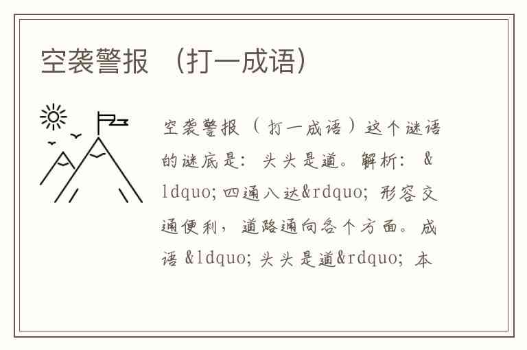 这个谜语通过将日常的国防警报知识与中国成语文化相结合,既考验联想能力,又富有趣味性。