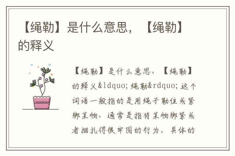 不过,根据语境的不同,“绳勒”可能有不同的表现和解读。如果你有特定的上下文,能提供更多信息,我可以帮你更准确地理解这个词的含义。