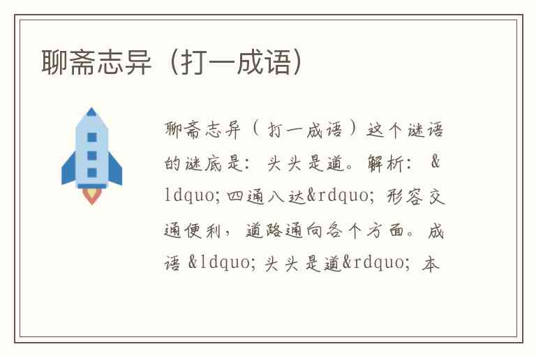 这个谜语的解法非常巧妙,它抓住了《聊斋志异》这本名著的核心内容特点: