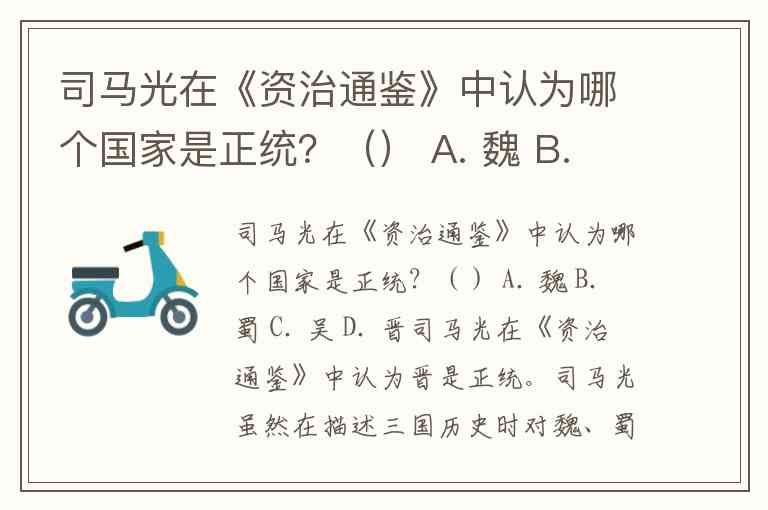 司马光在《资治通鉴》中认为哪个国家是正统?() A. 魏 B. 蜀 C. 吴 D. 晋