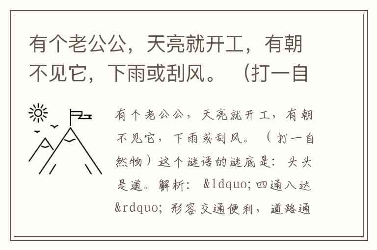 有个老公公,天亮就开工,有朝不见它,下雨或刮风。 (打一自然物)