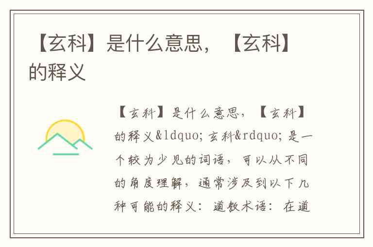 【玄科】是什么意思,【玄科】的释义