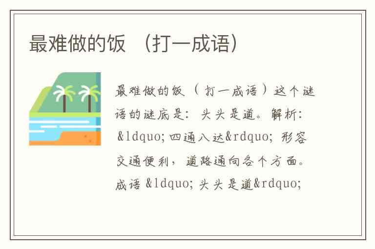 根据谜面“最难做的饭”,谜底是 无米之炊。