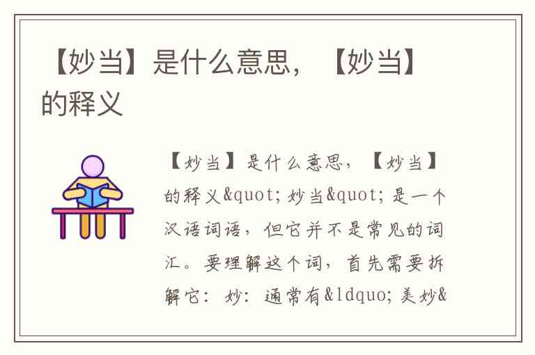 "妙当"是一个汉语词语,但它并不是常见的词汇。要理解这个词,首先需要拆解它: