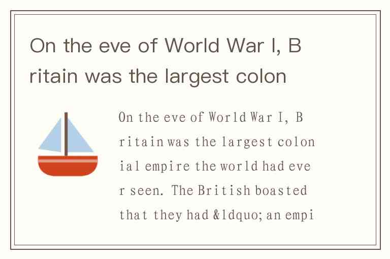 On the eve of World War I, Britain was the largest colonial empire the world had ever seen. The British boasted that they had “an empire _____________”. A. on which the sun never rise B. on which the moon never set C. on which the sun never set D. on which the sun rarely set