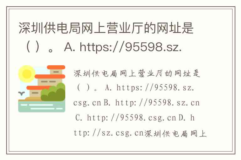 深圳供电局网上营业厅的网址是( )。 A. https://95598.sz.csg.cn B. http://95598.sz.cn C. http://95598.csg.cn D. http://sz.csg.cn