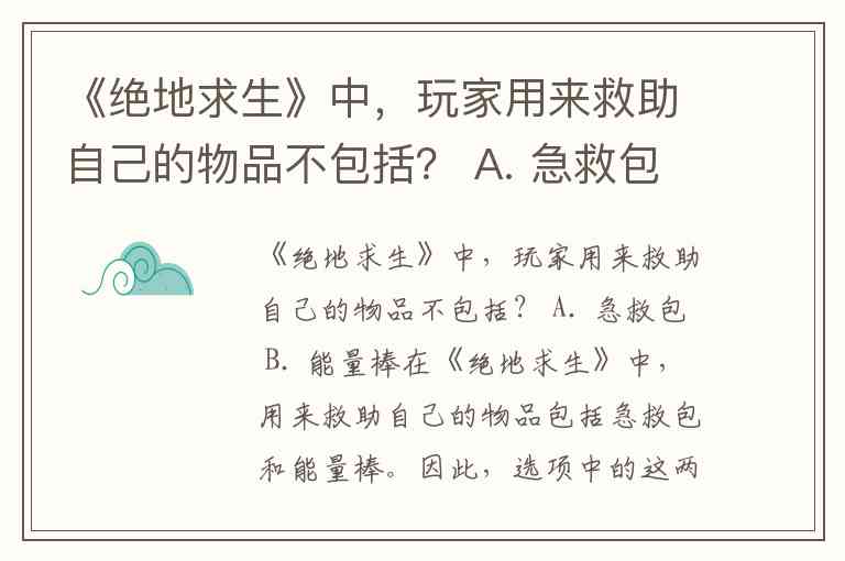 《绝地求生》中,玩家用来救助自己的物品不包括? A. 急救包 B. 能量棒