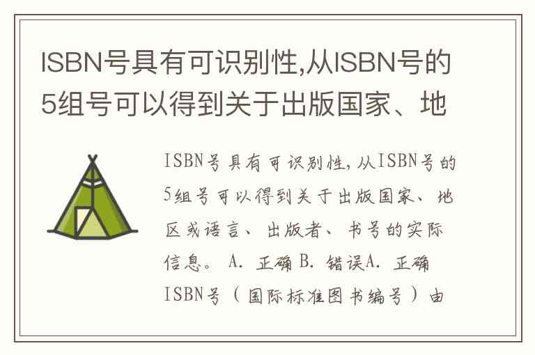 ISBN号具有可识别性,从ISBN号的5组号可以得到关于出版国家、地区或语言、出版者、书号的实际信息。 A. 正确 B. 错误