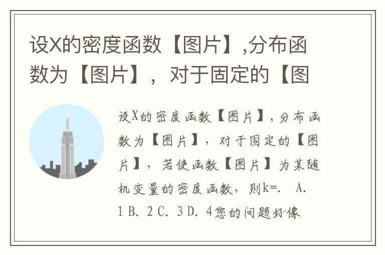 您的问题好像没有完整描述出来。具体来说,您提到了“设X的密度函数”和“分布函数”,但没有给出具体的密度函数形式以及分布函数。如果可以提供更多的信息,我可以帮您分析并解答问题。