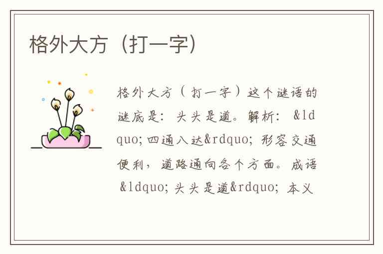 这个谜语的精妙之处在于对词语的别解,让“格”和“方”从形容词转变为名词性的汉字部件,从而巧妙地组合出谜底。