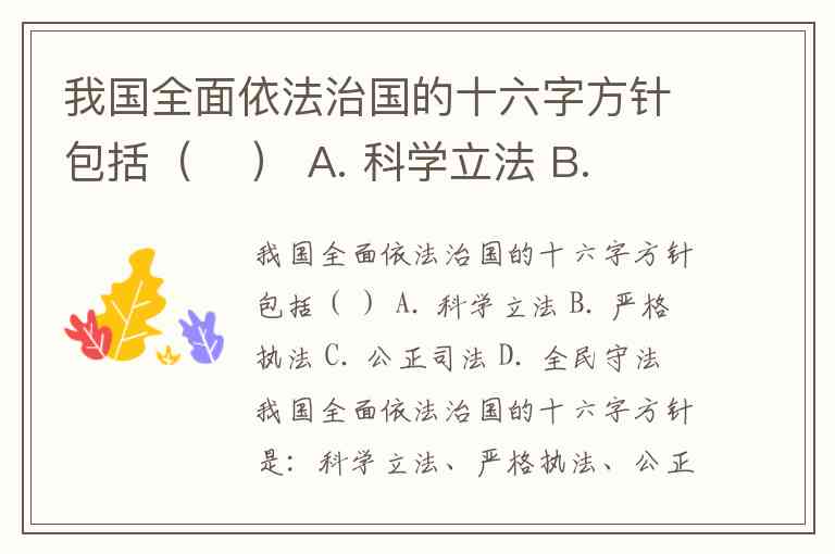 我国全面依法治国的十六字方针包括( ) A. 科学立法 B. 严格执法 C. 公正司法 D. 全民守法