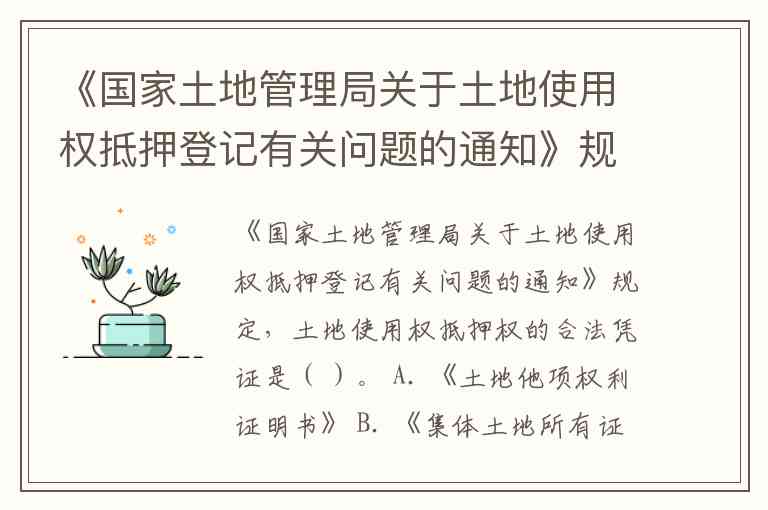 《国家土地管理局关于土地使用权抵押登记有关问题的通知》规定,土地使用权抵押权的合法凭证是: