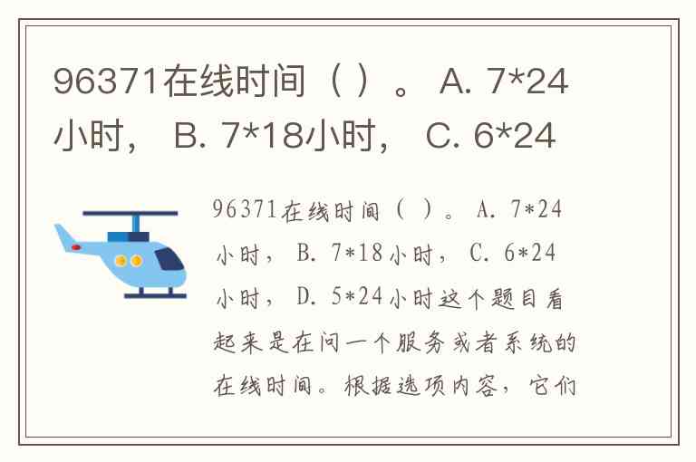 96371在线时间( )。 A. 7*24小时, B. 7*18小时, C. 6*24小时, D. 5*24小时