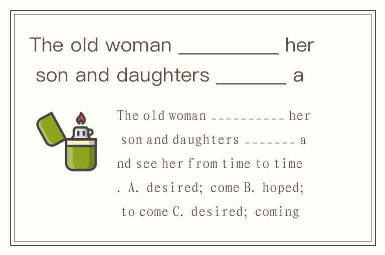 The old woman __________ her son and daughters _______ and see her from time to time. A. desired; come B. hoped; to come C. desired; coming D. suggested; to come