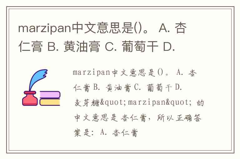 marzipan中文意思是()。 A. 杏仁膏 B. 黄油膏 C. 葡萄干 D. 麦芽糖