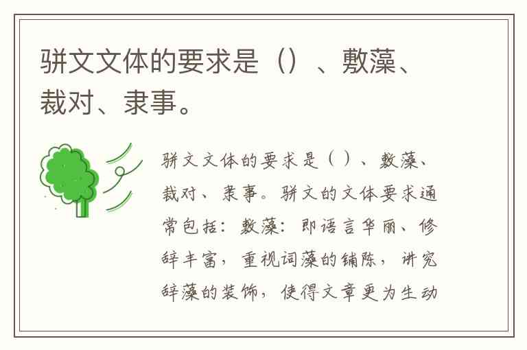 骈文文体的要求是()、敷藻、裁对、隶事。