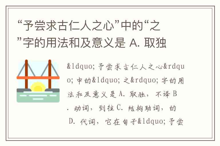 “予尝求古仁人之心”中的“之”字的用法和及意义是 A. 取独,不译 B. 动词,到往 C. 结构助词,的 D. 代词,它