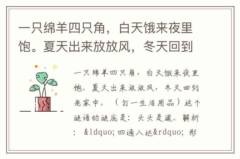 这个谜语形象地描绘了蚊帐在不同季节的使用特点和生活状态,简单来说: