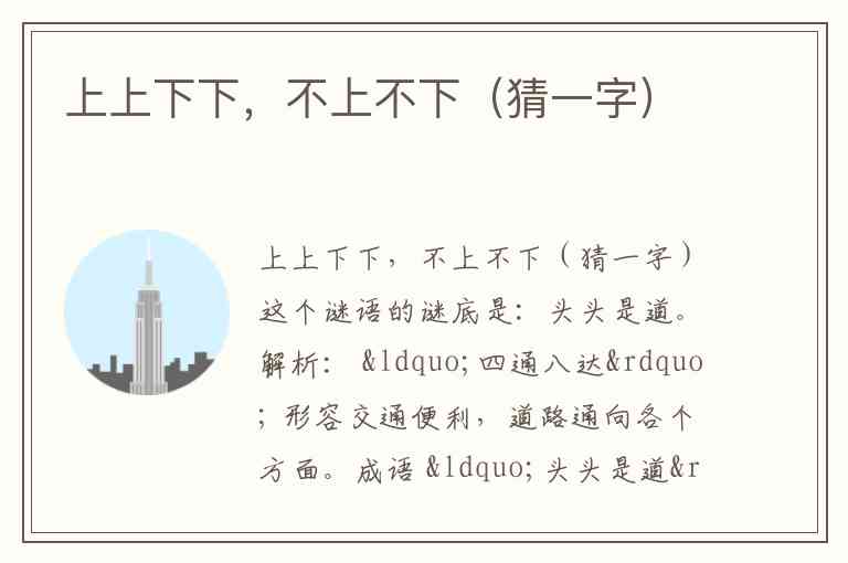 因此,这个谜语通过字形和字义的两个角度,都精准地指向了同一个答案“卡”,构思十分精妙。