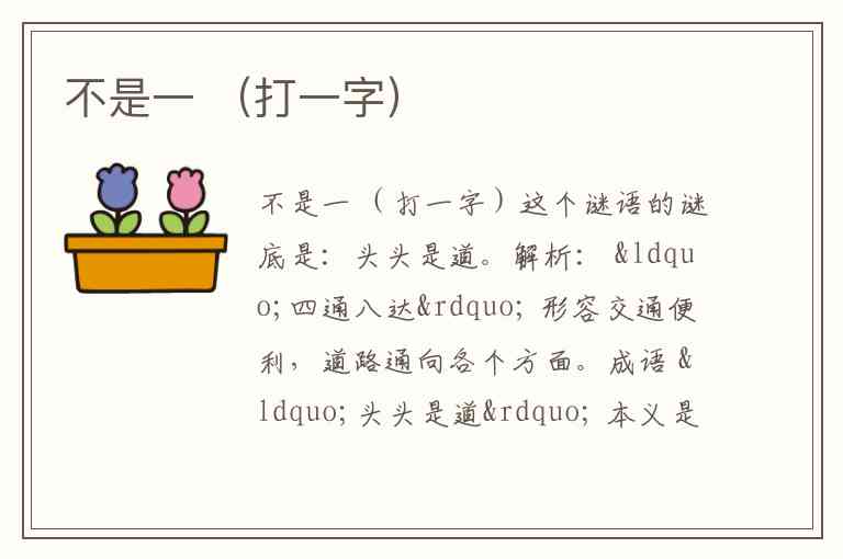 这个谜语简洁明了,通过否定词“不”和数字“一”的简单叠加,形成了一个新的汉字。
