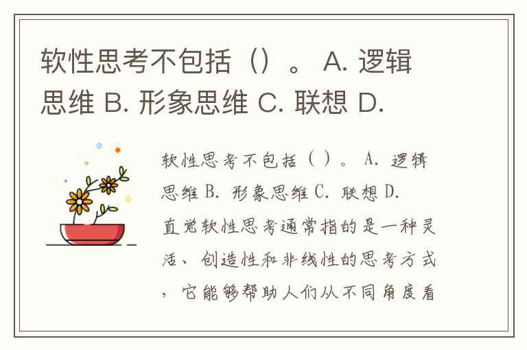 软性思考不包括()。 A. 逻辑思维 B. 形象思维 C. 联想 D. 直觉