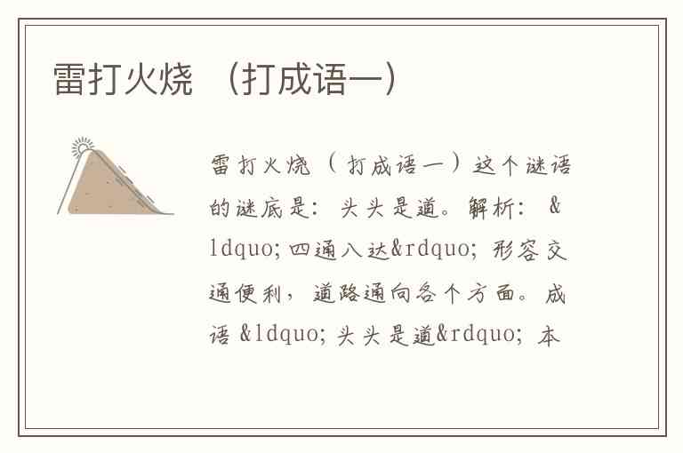 组合谜底:将“雷打”的“轰轰”与“火烧”的“烈烈”结合起来,就构成了成语“轰轰烈烈”,形容声势浩大,气象雄伟。