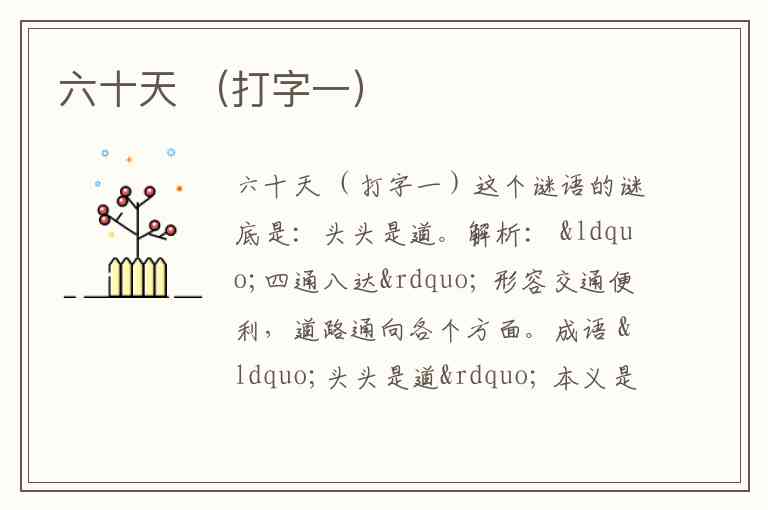 所以,“六十天”这个谜面,通过时间换算,巧妙地指向了由两个“月”组成的“朋”字。
