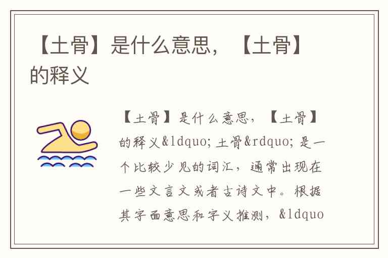 “土骨”是一个比较少见的词汇,通常出现在一些文言文或者古诗文中。根据其字面意思和字义推测,“土骨”有以下几种可能的解释: