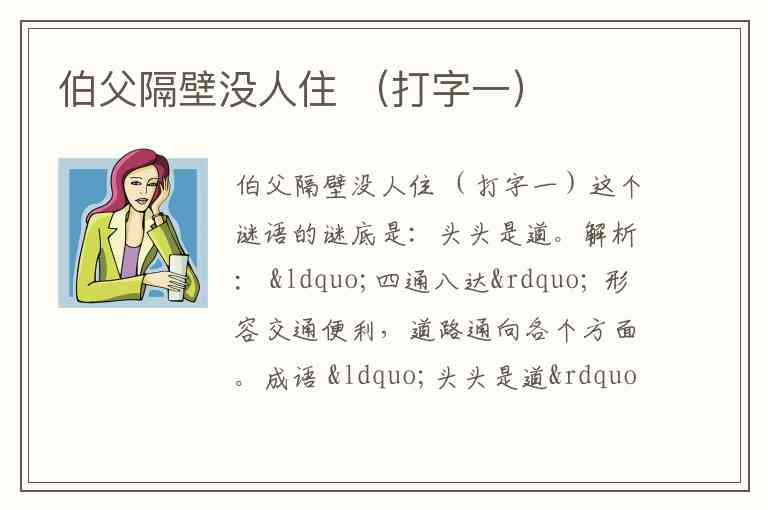 “隔壁”:这里指示方位,意味着“伯父”二字中相邻的部分。