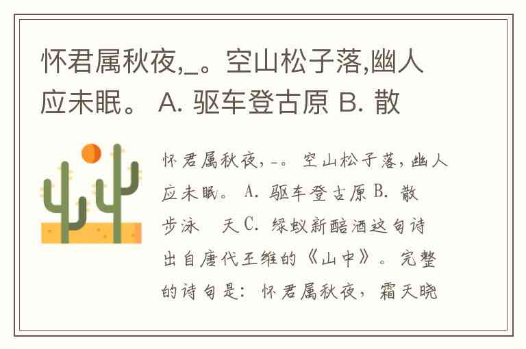怀君属秋夜,_。空山松子落,幽人应未眠。 A. 驱车登古原 B. 散步泳涼天 C. 绿蚁新醅酒