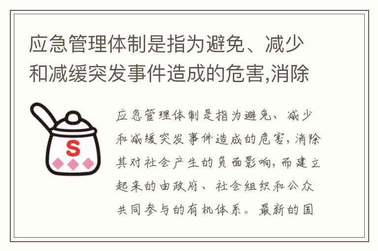 应急管理体制是指为避免、减少和减缓突发事件造成的危害,消除其对社会产生的负面影响,而建立起来的由政府、社会组织和公众共同参与的有机体系。最新的国务院机构改革中,将国家安全生产监督管理局、国务院办公厅、公安部等十三个部门的应急救援相关职责进行整合,组建应急管理部。此举旨在( ) 1提升应急管理能力,保障公共安全 2有效整合行政资源,提升依法行政水平 3完善应急管理体系,提高社会管理水平 4发挥特色管理效能,避免重特大安全风险 A. ①③ B. ①② C. ③④ D. ②④