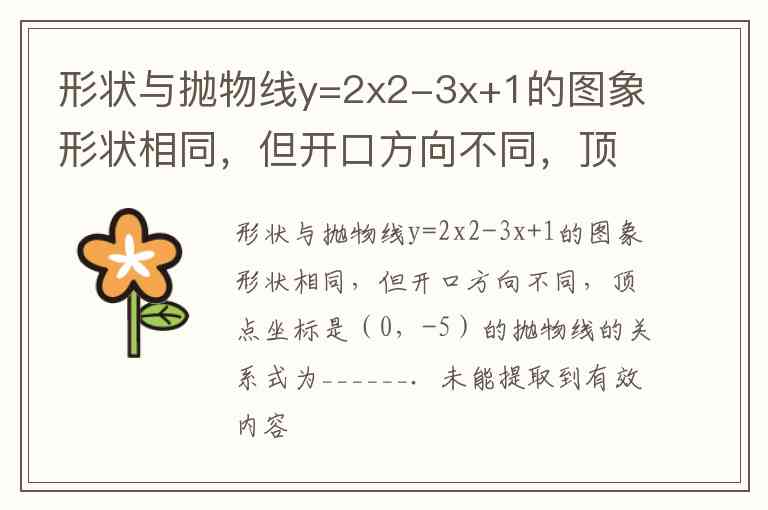 形状与抛物线y=2x2-3x+1的图象形状相同,但开口方向不同,顶点坐标是(0,-5)的抛物线的关系式为______.