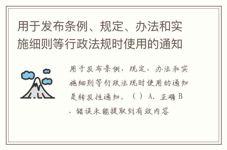 用于发布条例、规定、办法和实施细则等行政法规时使用的通知,正确的分类是 发布性通知,而不是转发性通知。