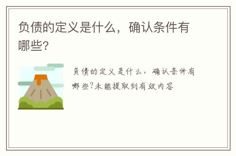 下面这个表格可以让你快速把握负债的核心定义和确认条件。