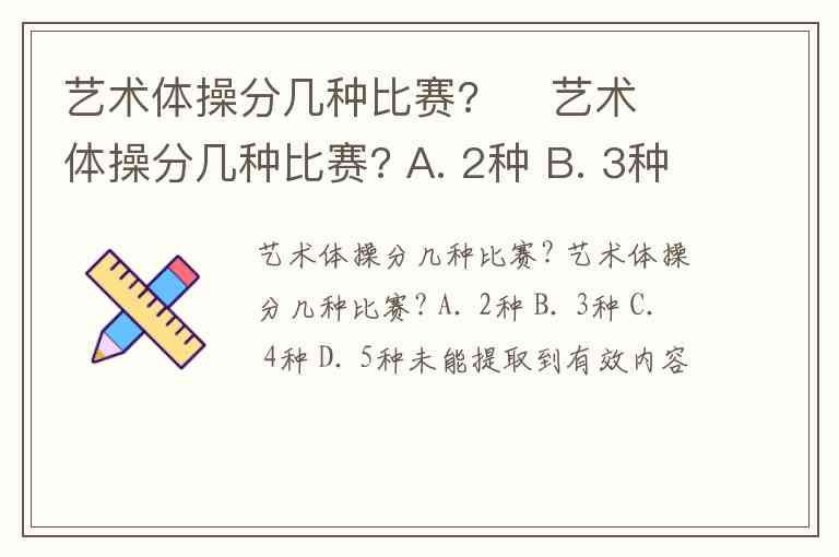 艺术体操分几种比赛? 艺术体操分几种比赛? A. 2种 B. 3种 C. 4种 D. 5种