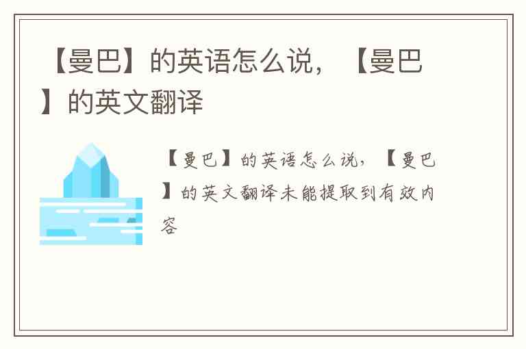 “曼巴”最常见的英文翻译是 Mamba,它直接音译自中文,并且在英语中已经被广泛接受和使用。