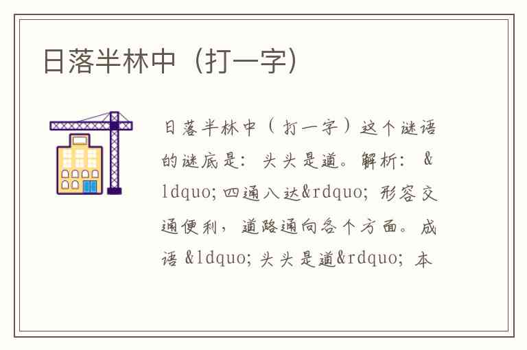 根据谜面“日落半林中”,谜底是 “东” 字。