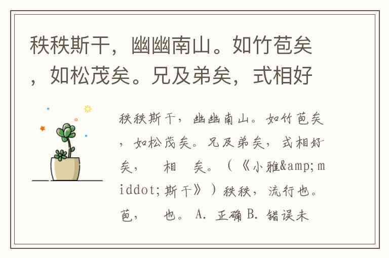 秩秩斯干,幽幽南山。如竹苞矣,如松茂矣。兄及弟矣,式相好矣,無相猶矣。(《小雅·斯干》)秩秩,流行也。苞,積也。 A. 正确 B. 错误