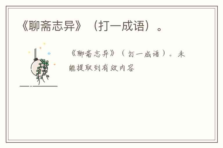 这个谜语运用了巧妙的“会意法”,将书名《聊斋志异》的内容特点与成语的含义联系起来。下面是详细的解析: