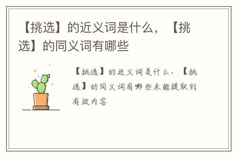 关于“挑选”的近义词,以下是一些常见且实用的选项,它们在语义侧重和使用场景上略有不同。