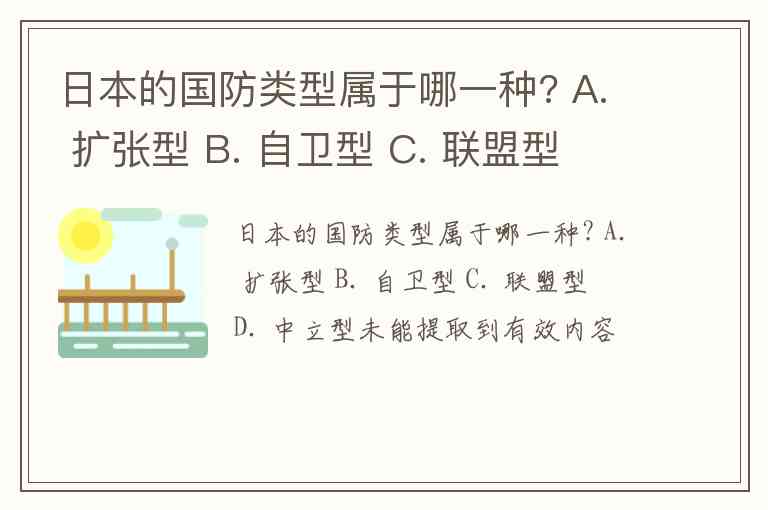 日本的国防类型属于哪一种? A. 扩张型 B. 自卫型 C. 联盟型 D. 中立型