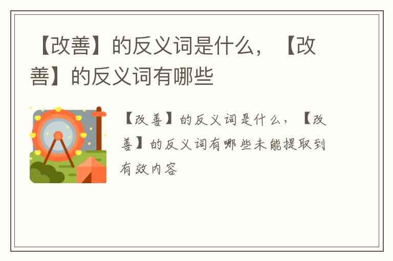 “改善”的核心含义是改变原有状况,使其更好。它的反义词主要指向“使变坏”或“向不好的方向发展”。以下是几个常见的反义词,它们在语境和程度上有所不同。