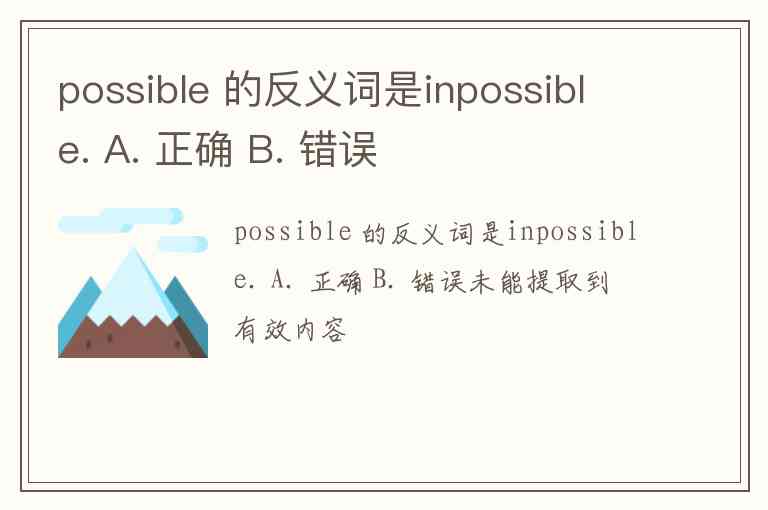 possible 的反义词是inpossible. A. 正确 B. 错误