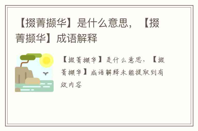 | 中文含义 | 拾取(掇/撷)精华(菁/华)。比喻从事物中选取精华。 |