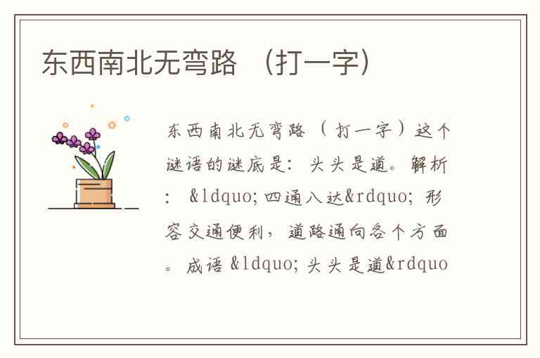 解读谜面:“东西南北”代表四个基本方位,即上(北)、下(南)、左(西)、右(东)。