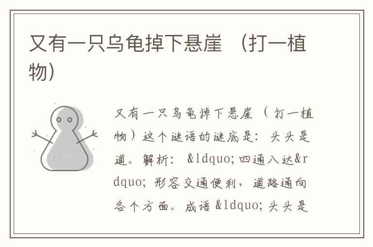 类似的谜语还有“一只乌龟掉下悬崖”,谜底是“玫瑰”(谐音“倒霉的乌龟”)。