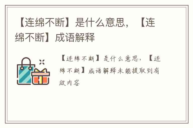 “连绵不断”是一个常用的汉语成语,下面为你详细解释它的含义、用法,并提供英语翻译。