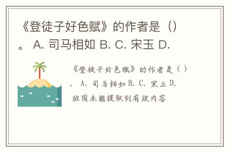 《登徒子好色赋》的作者是()。 A. 司马相如 B. C. 宋玉 D. 班固