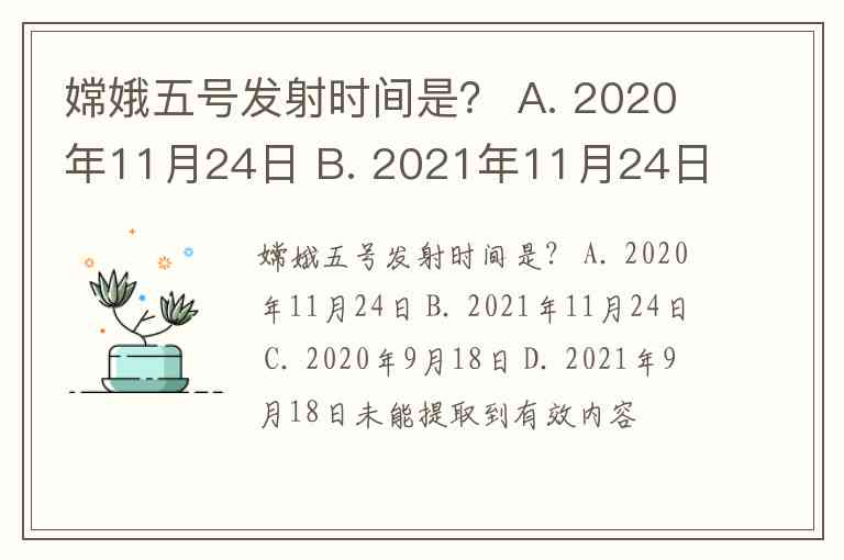 嫦娥五号发射时间是? A. 2020年11月24日 B. 2021年11月24日 C. 2020年9月18日 D. 2021年9月18日